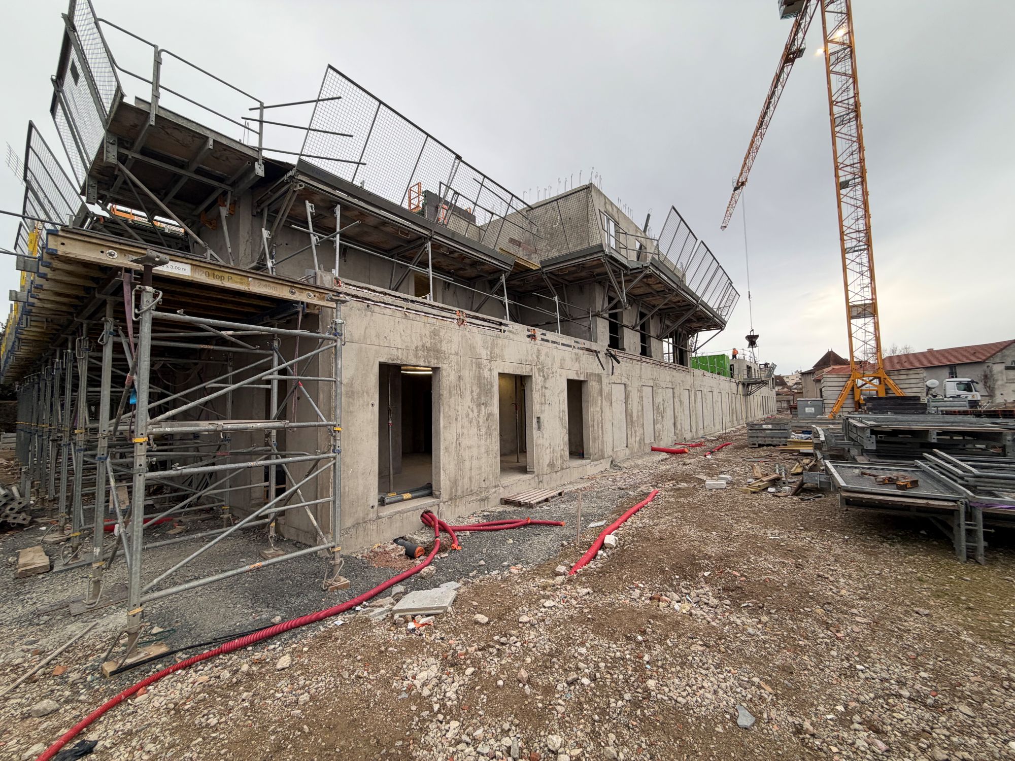 Débutés en avril 2025, les travaux de maçonnerie et gros oeuvre se poursuivent conformément au planning.